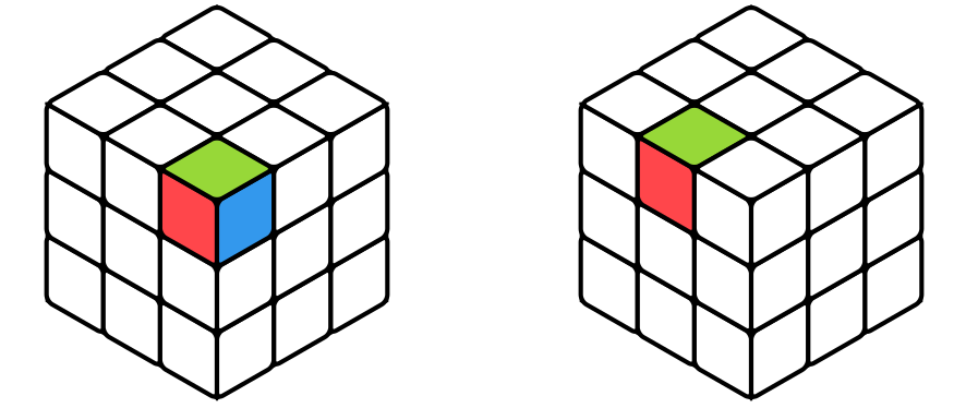 There would be 12! ways to rearrange the edge pieces if every possible permutation of edges were achievable, but this turns out not to be the case. Any permutation of n objects can be achieved by repeatedly applying transpositions, meaning repeatedly choosing a pair of objects and swapping them. A permutation is called even (respectively, odd) if it requires an even (respectively, odd) number of transpositions. If n is at least 2, then it turns out that exactly half the permutations of n objects are even and half are odd. In the case of the Rubik’s cube, it turns out that a sequence of moves produces an even permutation of the 12 edge pieces if and only if it produces an even permutation of the 8 corner pieces. This gives a total of 12!/2 permutations of the edges once a permutation of the corners has been fixed. It also turns out that 11 of the 12 edge pieces can be oriented arbitrarily, but then the orientation of the 12th piece is fixed. This gives a further factor of 211 permutations, leading to the formula 8! × 37 × 12!/2 × 211 = 43,252,003,274,489,856,000 for the total number of symmetries.