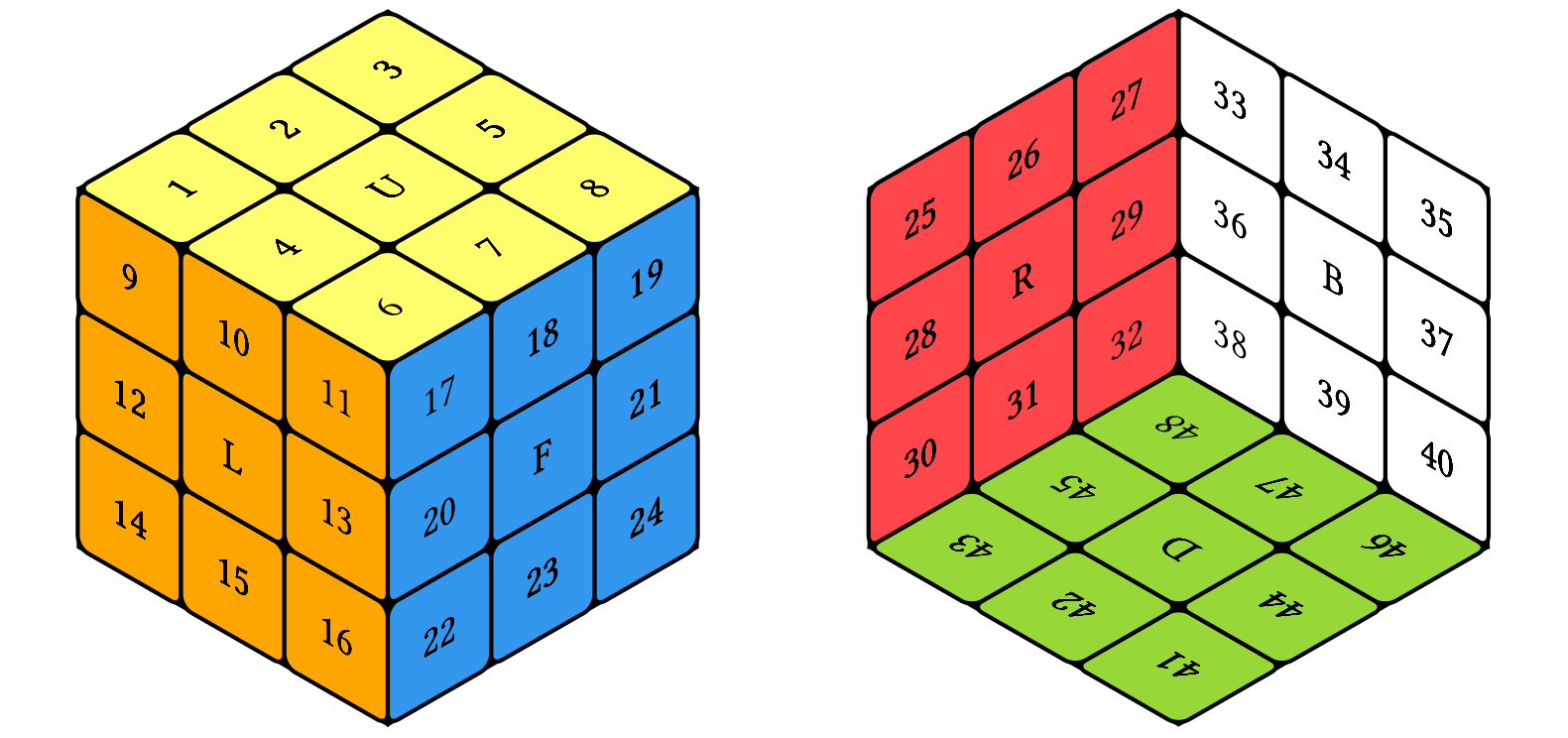 The three diagrams of the Rubik’s Cube come from the paper by M. Mereb and L. Vendramin.