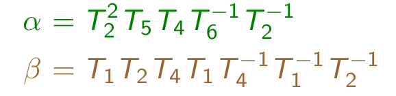 Mathematicians express this by saying that the set {T1,T2,T3,T4,T5,T6} is a set of generators for the group of symmetries of Rubik’s cube. In fact, the group of symmetries can be generated by a smaller set {α, β}, given by the formulae shown above.