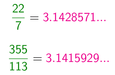 Even though π is irrational, it is still possible to approximate it by rational numbers. Perhaps the best known such approximation is 22/7, which is accurate to 2 decimal places. More impressively, the rational number 355/113 agrees with π to 6 decimal places.