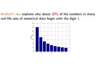 Benford’s law is the observation that in many real life sets of numerical data, the leading digit is likely to be small, and is equal to 1 about 30% of…